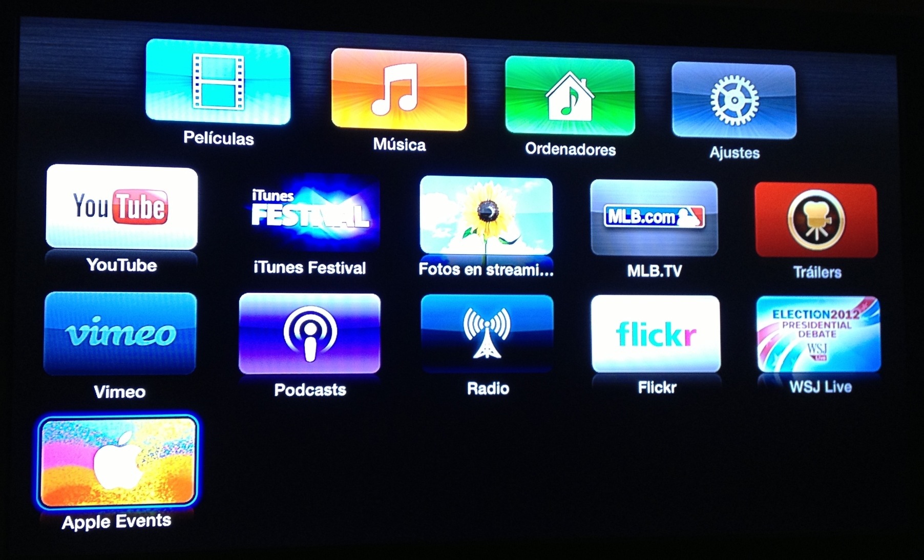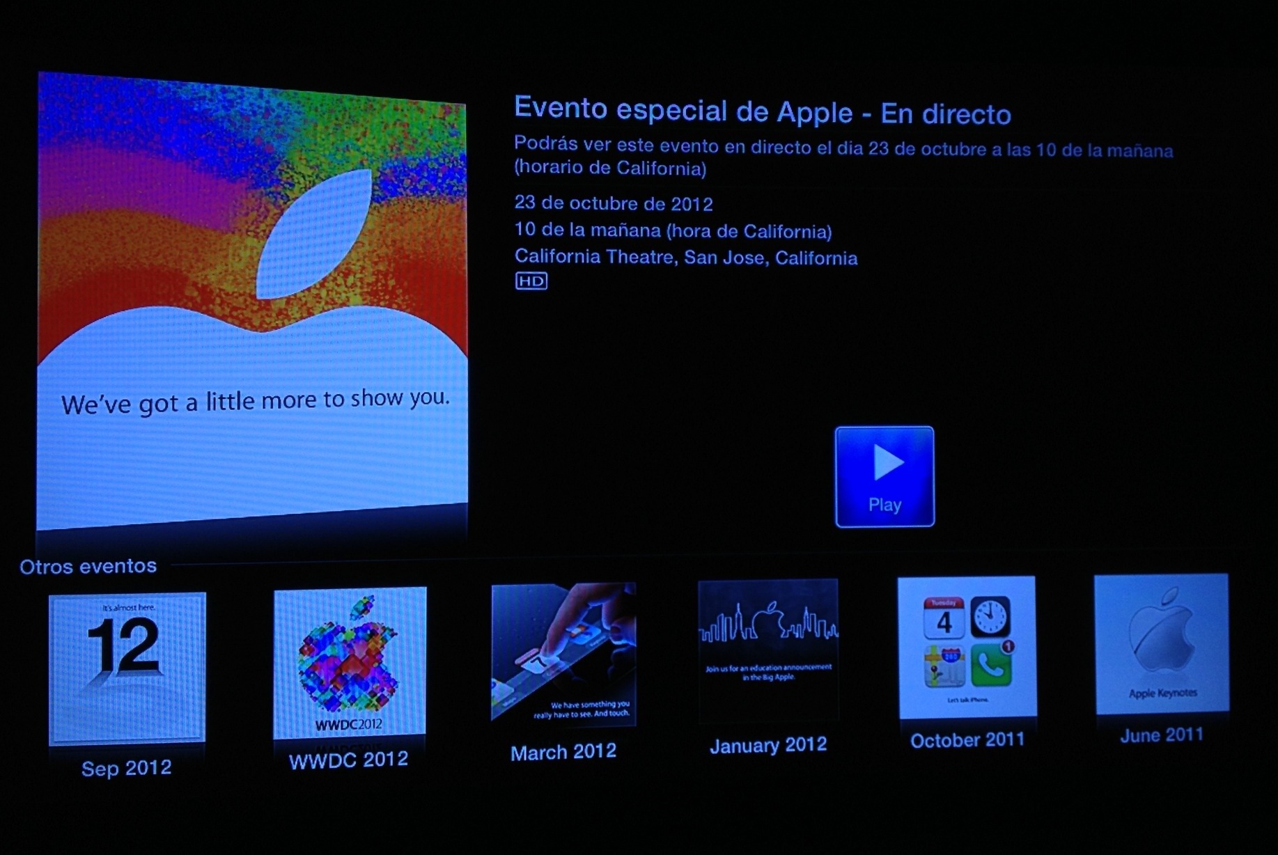 Apple ha actualizado los AppleTv y ahora aparece en el menú de inicio (abajo a la izquierda), un servicio de Apple Events.