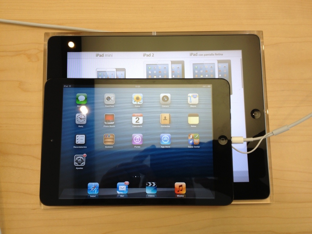 Aunque ya casi todo el mundo se hace una idea del tamaño del «mini», hemos querido compararlo en la anterior imagen con el iPad de tercera generación para todos aquellos que estáis familiarizados con el formato grande.