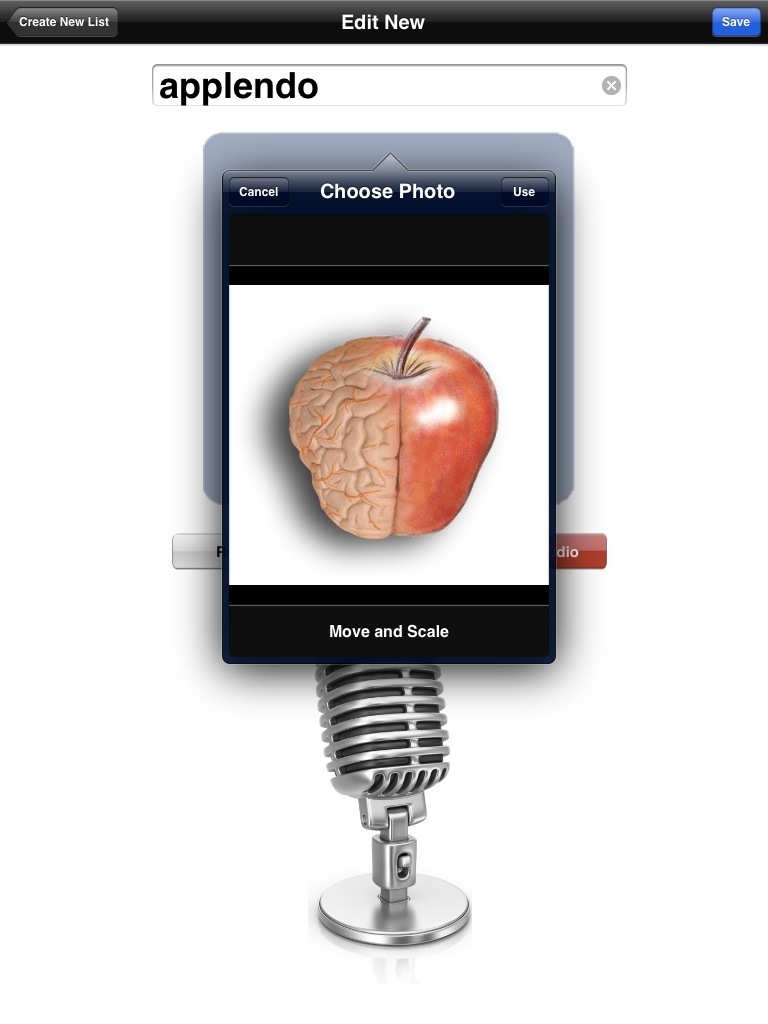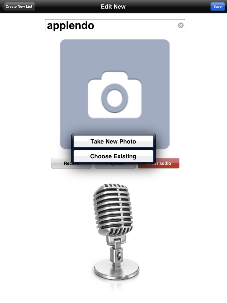 Ahora pulsamos en la imagen de cámara de fotos y podremos hacer una foto (take new photo) o seleccionar una imagen desde nuestra biblioteca del iPad (choose existing).