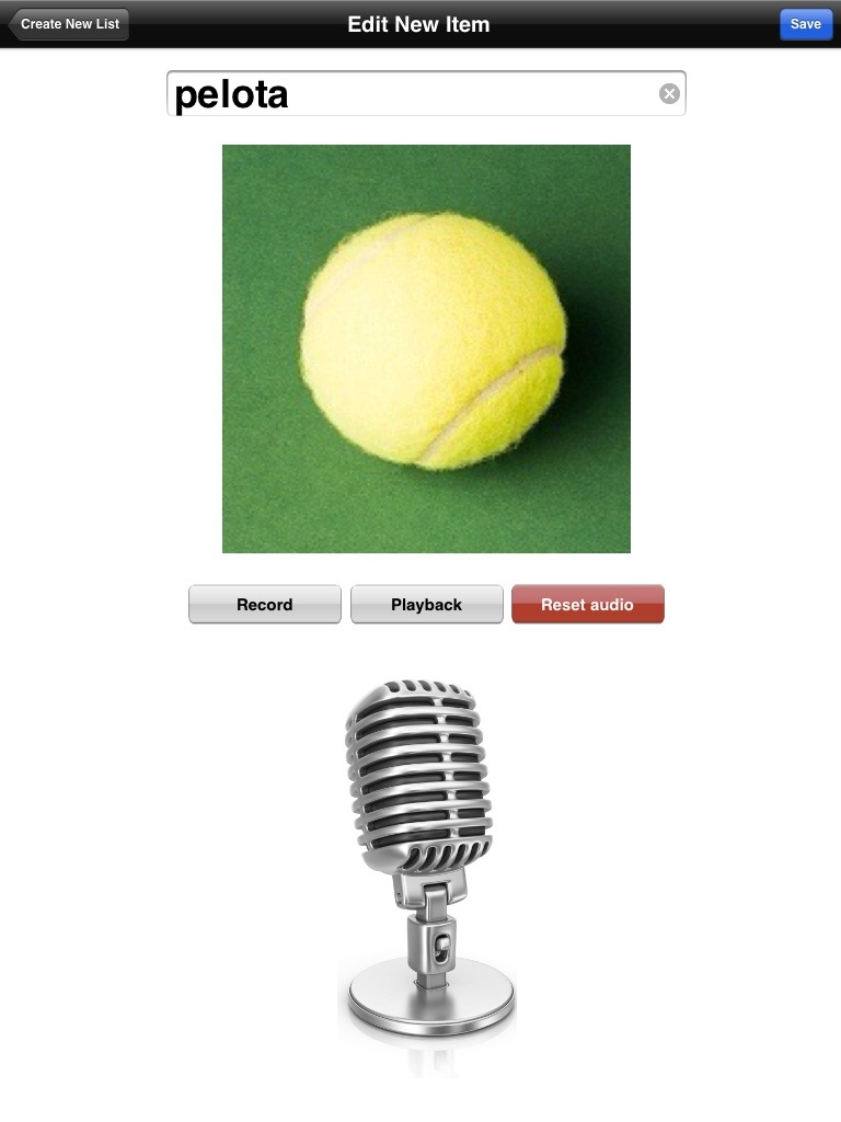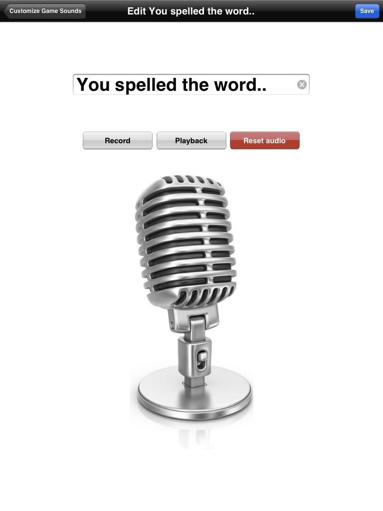 Así, pulsaremos en «Record» para grabar nuestra voz pronunciando la palabra. Luego pulsaremos «stop» para parar la grabación y luego comprobaremos si lo hemos hecho correctamente con el botón «playback». Si pulsamos «Reset Audio» el sistema recuperará la grabación por defecto de la aplicación.