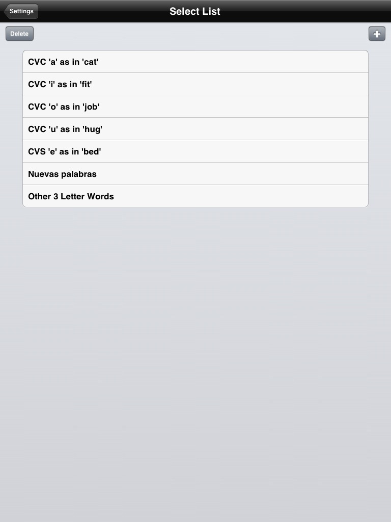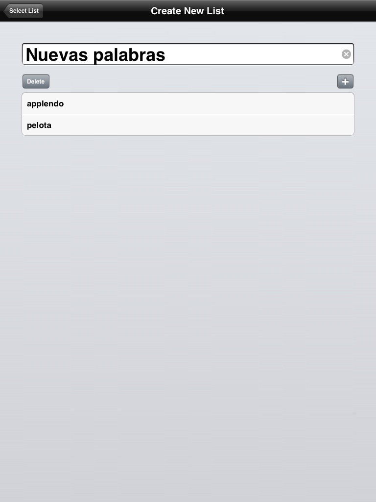 Si queremos borrar una palabra de la biblioteca o una lista de palabras completa, tan sólo tenemos que deslizar el dedo de izquierda a derecha sobre cada elemento y aparecerá un botón rojo don la palabra «delete» (borrar), si pulsamos este botón rojo desaparecerá el elemento o lista y no se podrá recuperar, así que ojo con lo que hacemos….