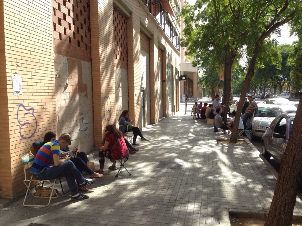 Sillas plegables, picnic urbano, mucho café y los iPhone turnándose para cargarse en un coche cercano.